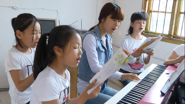 合唱团的学生练习发音